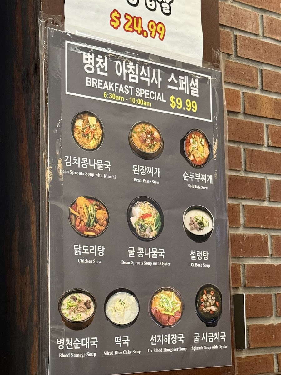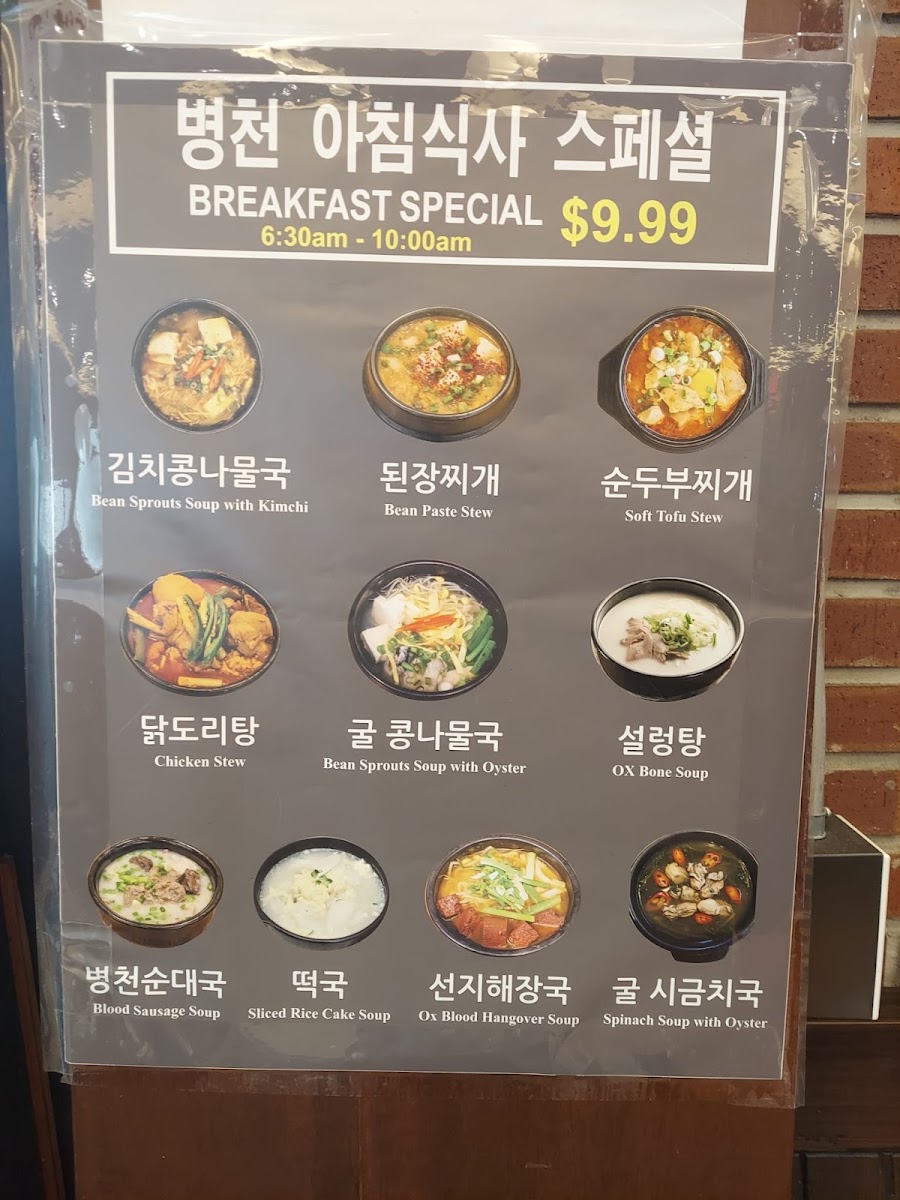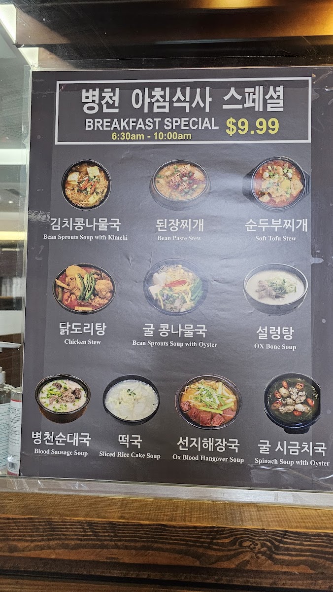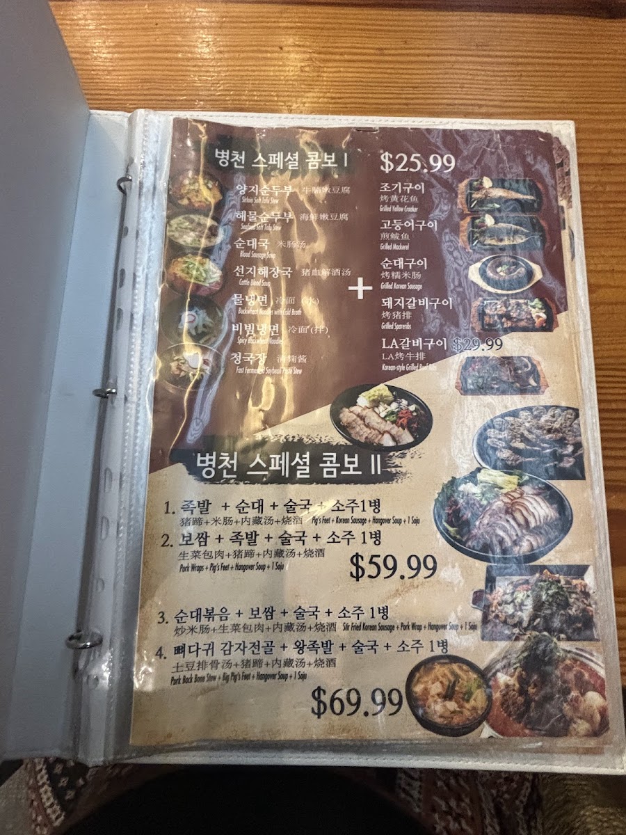 Byung Chun Soondae offers a straightforward and comforting menu centered around classic Korean dishes that feel both familiar and satisfying. The menu features hearty soups, savory stews, and rich grilled meats, making it a go-to spot for meals that warm you up and provide a sense of home.