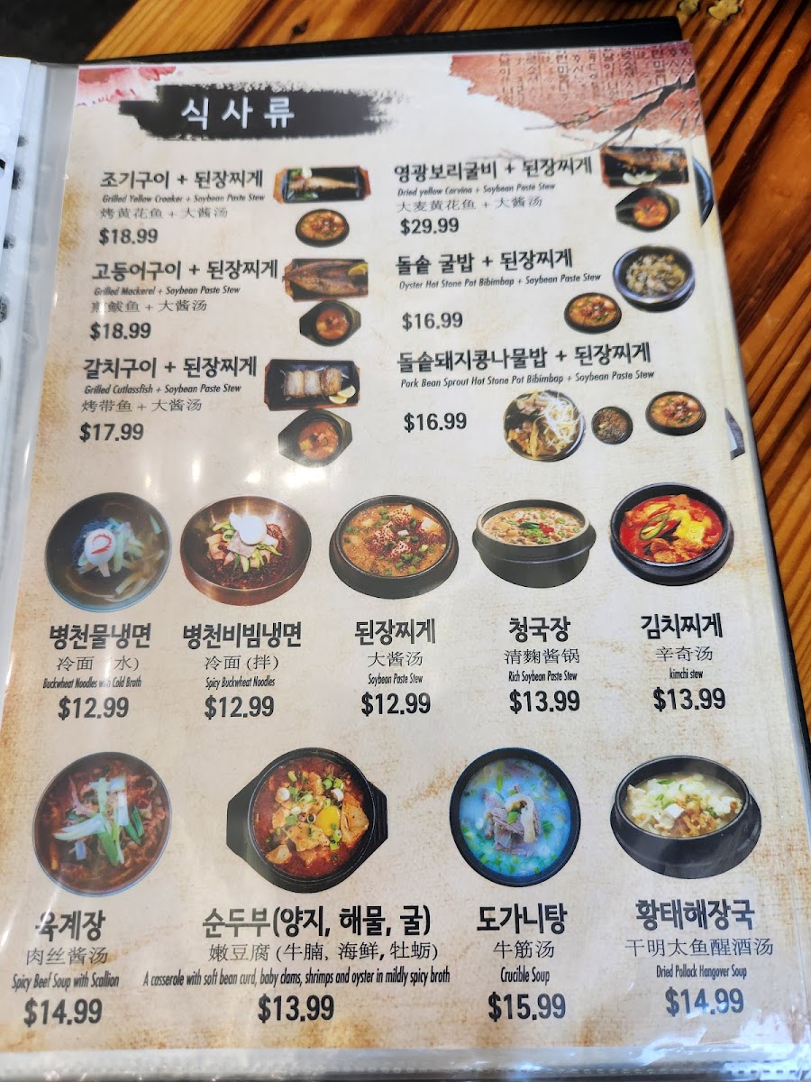 Overall, the menu reflects a focus on traditional Korean comfort food served in straightforward, generous portions — ideal for anyone looking to enjoy a meal that’s satisfying without fuss, in a space that feels easygoing and familiar.